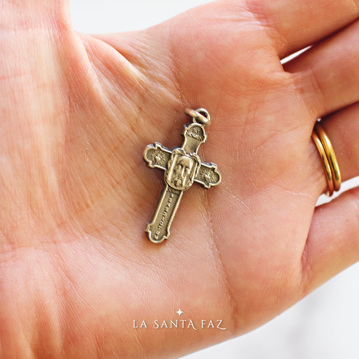 Cruz sacramental de la Santa Faz realizada en Plata 925. Réplica fiel y única en Argentina de la cruz de la Archicofradía de la Santa Faz de Tours (Francia). Mide 3 x 2 cm.